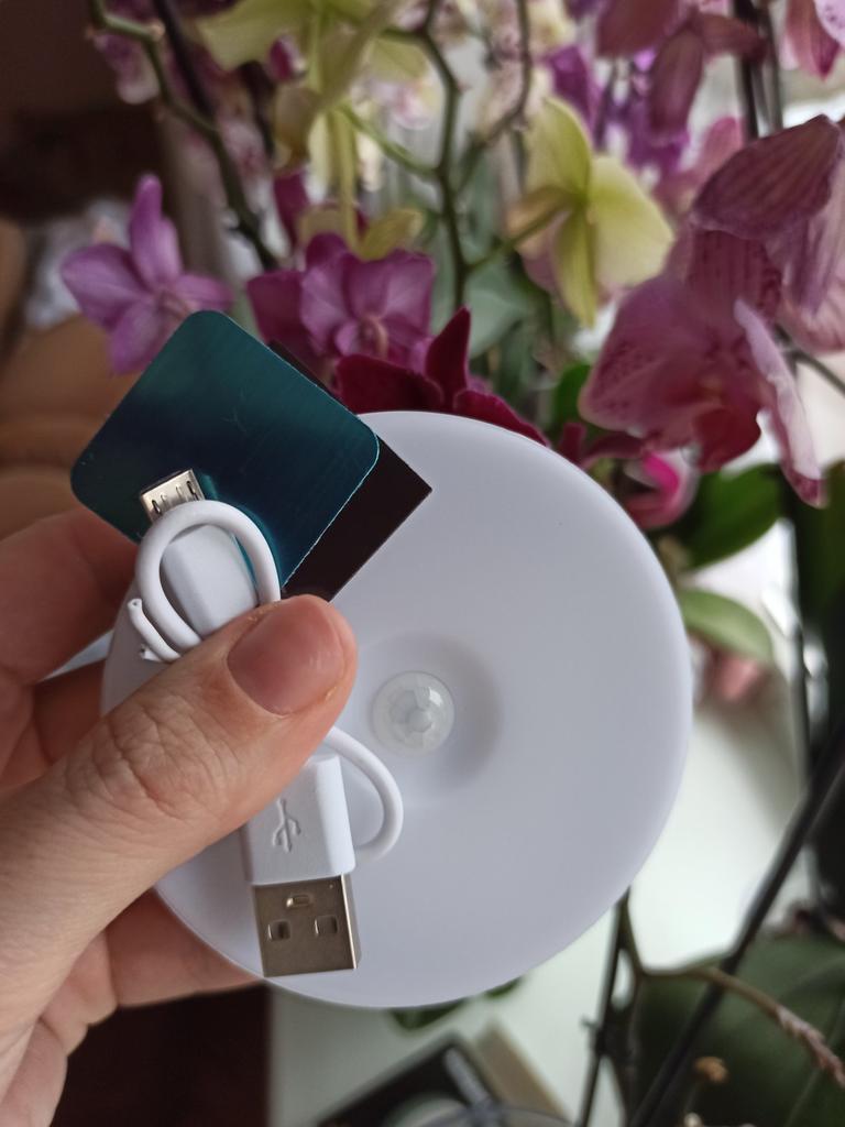 LED night light Unlike a traditional battery-powered night light, the motion sensor for home has a built-in 400mAh lithium rechargeable battery. It takes 2 to 4 hours to fully charge the light sensor, and then it works for many days in automatic mode. The LED light sensor saves energy. The rechargeable motion sensor automatically turns on when motion is detected, automatically turns off after 15-20 seconds of inactivity. The touch light for home is easy to install, without hard wiring. With double-sided adhesive pads and a built-in magnet, the rechargeable motion sensor light can be attached anywhere you like This light is perfect for the bedroom, hallway, bathroom, kitchen, closet, corridor, staircase, dark cabinets, shelves, stairs, or cupboards. Charged via USB. Arrived well packaged without damage.. I recommend to buy.