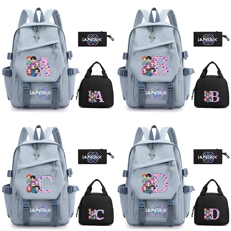 3Pcs/set Cartoon 26 English Letter Kpop Demon Hunters Printed Backpack for Teenger Children Large Capacity Schoolbag Girl Gift Women Travel Bag