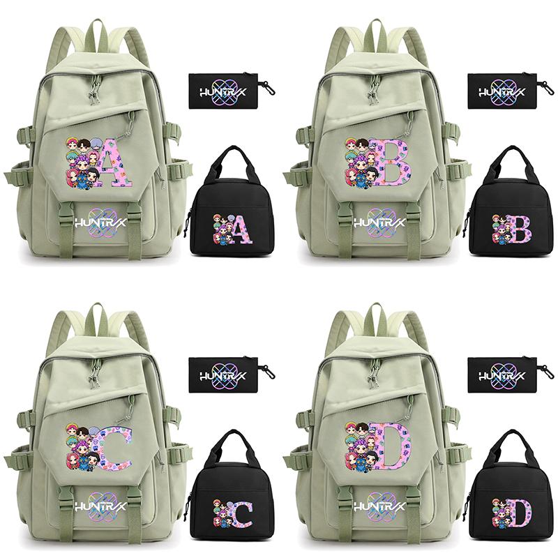 3Pcs/set 26 English Letter Kpop Demon Hunters Printed Backpack for Teenger Boy Girl Large Capacity Schoolbag Children Student Bookbag Women Travel Bag
