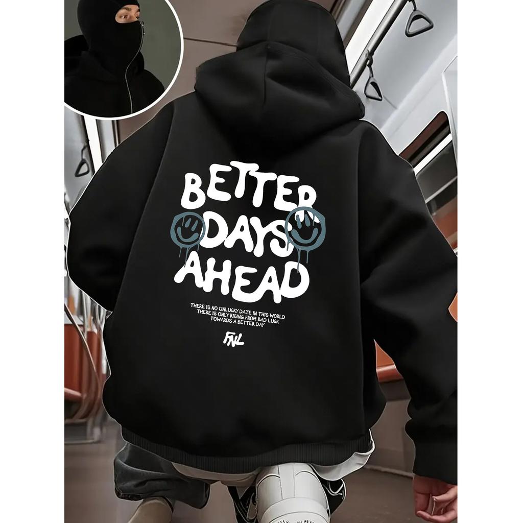 Better Days Ahead Letter Graphic Men Women Zipper Hoodie Autumn Fleece Clothes Trendy Man Hoody All-Match Loose MaleStreetwear