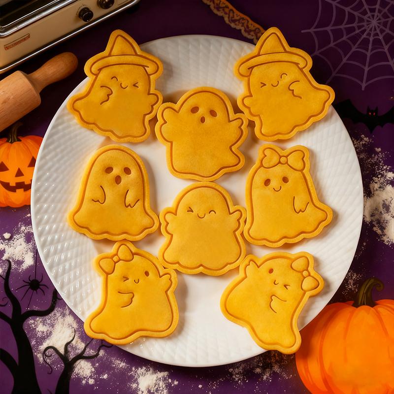 Halloween Themed Cookie Cutter 3D Plastic Adorable Ghost Biscuit Mold Fondant Stamp DIY Cake Decoration Baking Mould