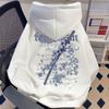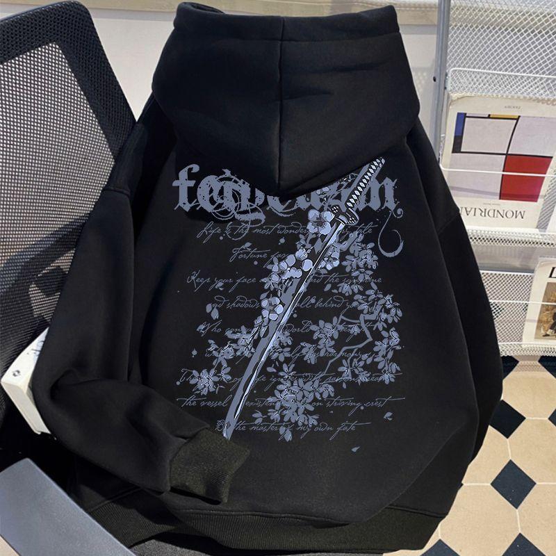 2025 New Cherry Blossom Sword Printing Pure Cotton Hooded Sweater Men's Autumn Loose and Versatile Casual Couple Top Large Size