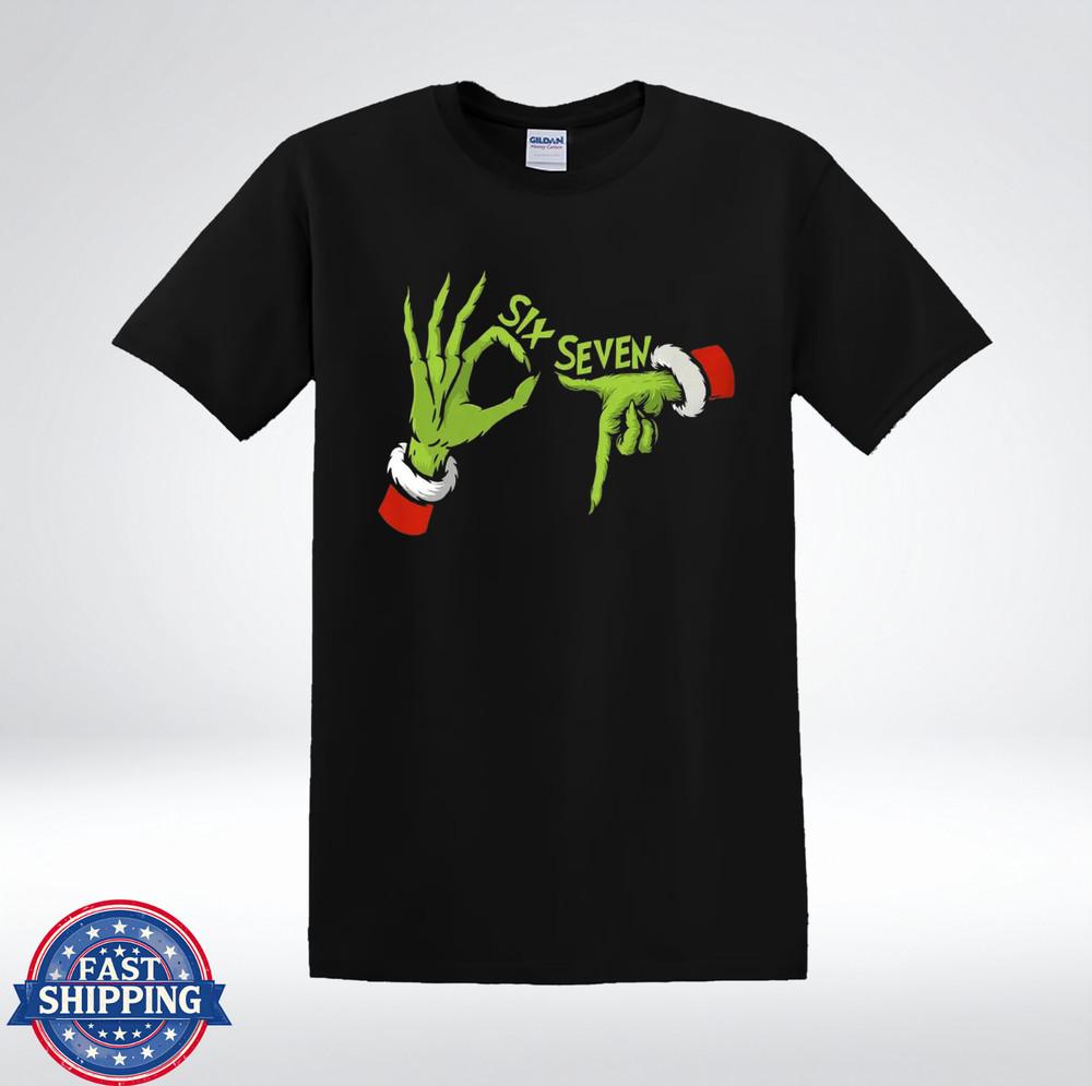 Funny Green Monster Hands Six Seven Christmas Humor Graphic T-Shirt