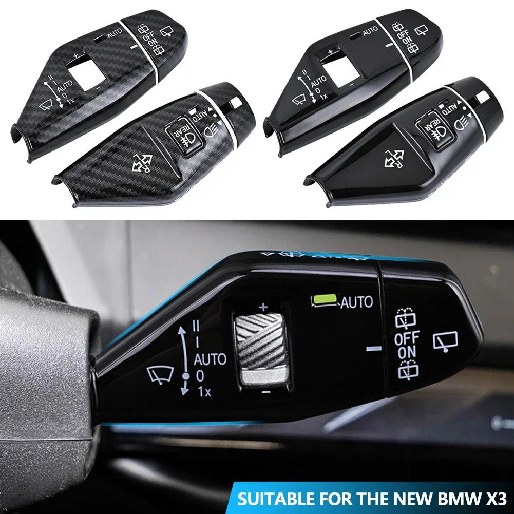 4Pcs/Set Carbon Fiber Steering Wheel Switch Trims for BMW X3 2025 Car Wiper Headlight Control Covers Accessories