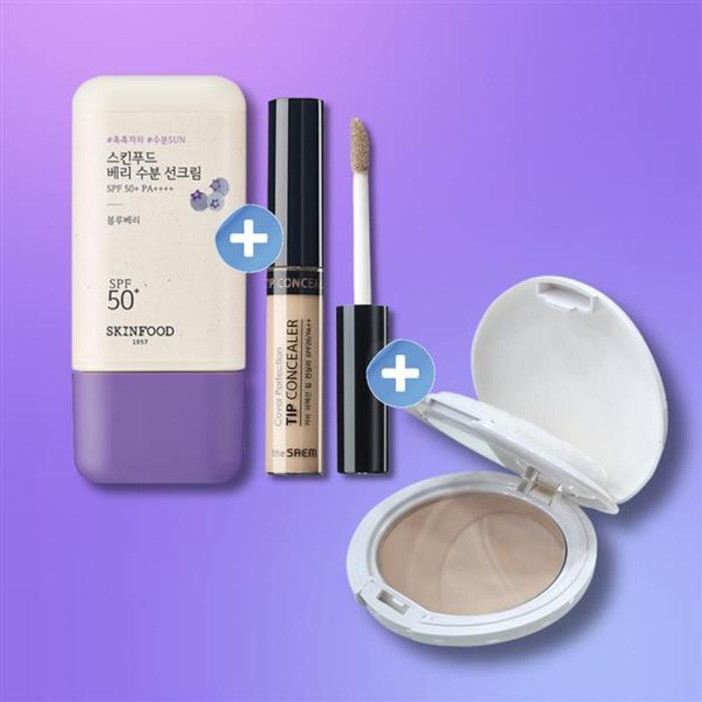 Skinfood Berry Moisture Sunscreen + Tip Concealer + Hanamori UV Sheer Pressed Powder No. 20 Transparent Makeup