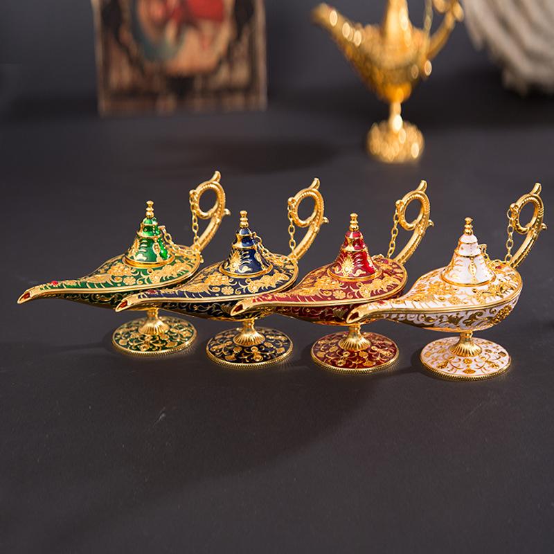 20cm(7.87") Classic Rare Hollow Legend Aladdin Magic Genie Lamp Burners Retro Wishing Oil Metal Crafts Ornaments Home Decor Gift