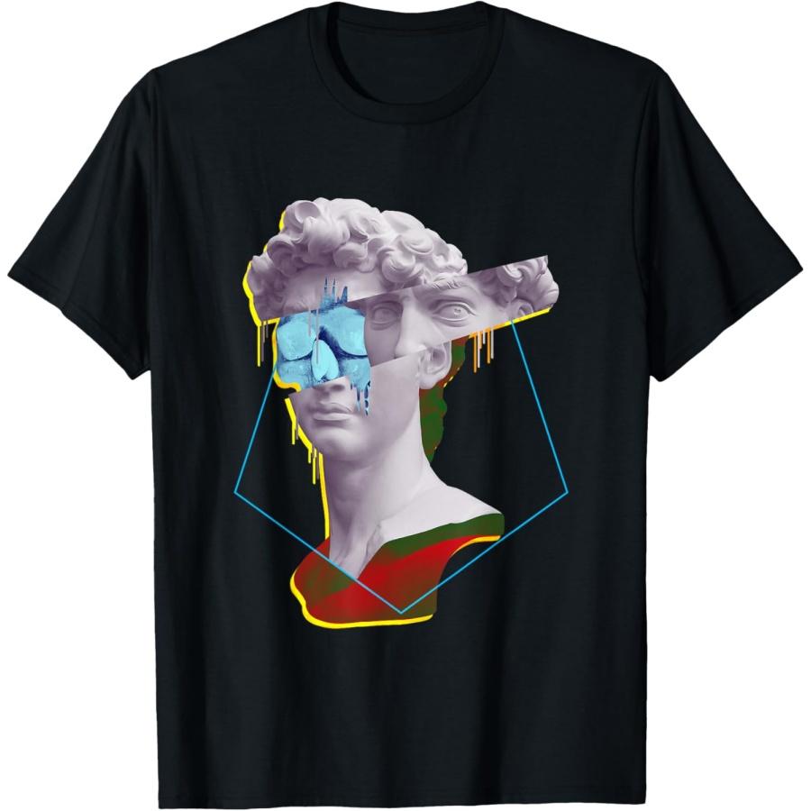 Vaporwave Statue David Bust & Skull Glitch Art - Retro 80s T-Shirt