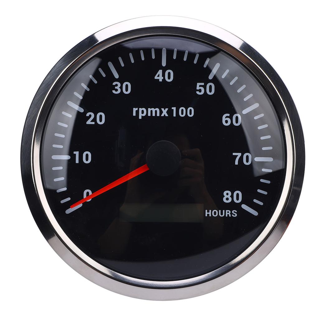 110mm 4-3/8in Tachometer 7 Color Backlight DC 9-32V 8000RPM Gauge with Hour Meter for Car Yacht RV Boat Truck