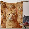 Cozy Golden Cats Print Flannel Blanket - Soft Warm All-Season Polyester Knit Fabric with Adorable Orange Kitten Design