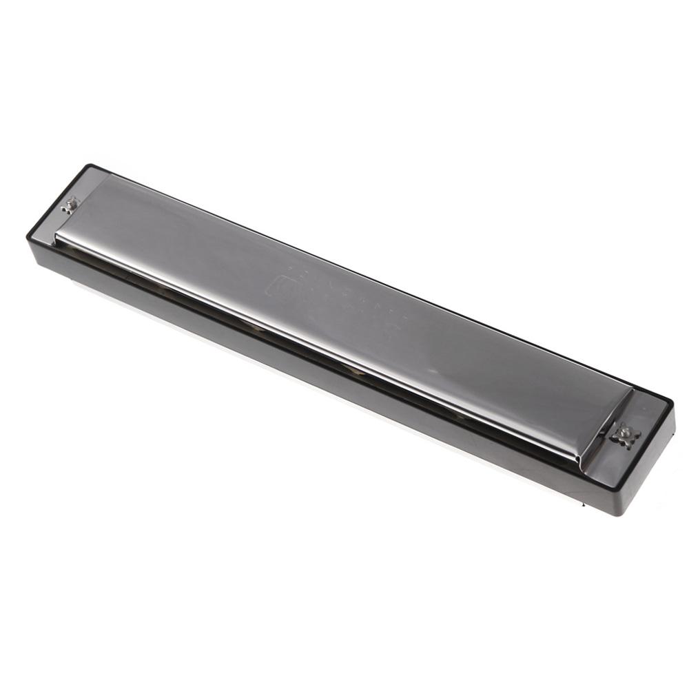 Swan Tremolo Harmonica Mouth Organ 24 Double Holes with 48 Reeds Key of C Free Reed Wind Instrument with Case Silver