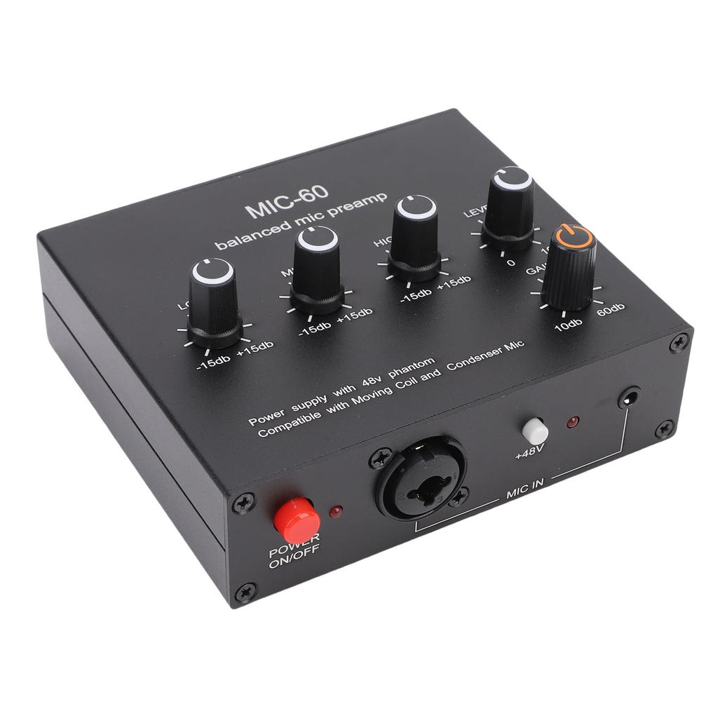 Microphone Preamp 3.5mm 6.5mm XLR Intput Output 60db Gain Condenser and Dynamic Mic Preamplifier with 48V Phantom Power