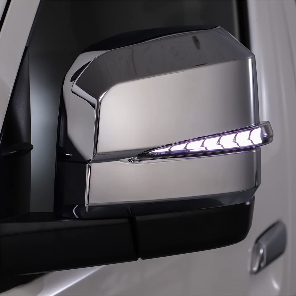 AVEST VerticalArrow Sequential Door Mirrors with LED Turn Signal Lenses for Toyota Hiace 200 Series Covers with Inner Bronze Gold and White LEDs (6th