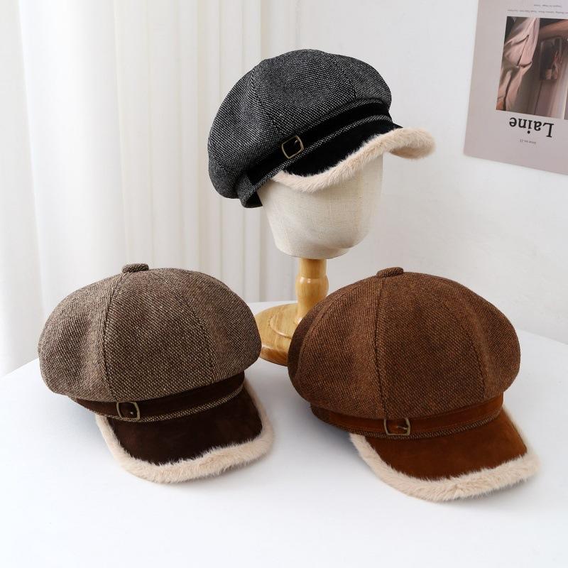 Octagon Hat Female Beret Autumn and Winter Style Fleece Warm Newsboy Hat Painter's Hat New Style