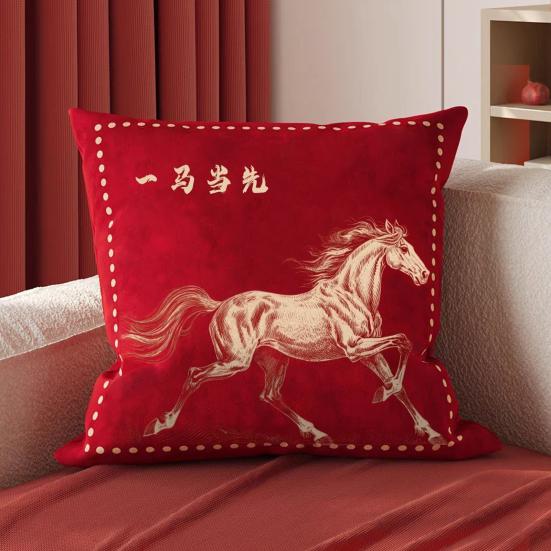 Featuring a vibrant red design with exquisite horse patterns symbolizing good luck and strength, it's perfect for New Year or Year of the Horse celebrations, adding a festive touch to any space. Soft and skin-friendly, this pillow cover promotes health and safety for your family and guests. Ideal for use in the home, office, living room, bedroom, sofa, or car.