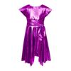 Girls Praise Dance Metallic Tunic Asymmetrical Hem Belted Choir Dress Performance Gown