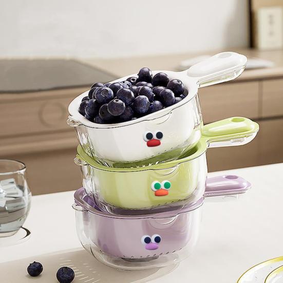 Drain Basket with Ergonomic Handle Thickened Double-Layer Design Kitchen Strainer Bowl Fruit Vegetable Washing Straining Basket