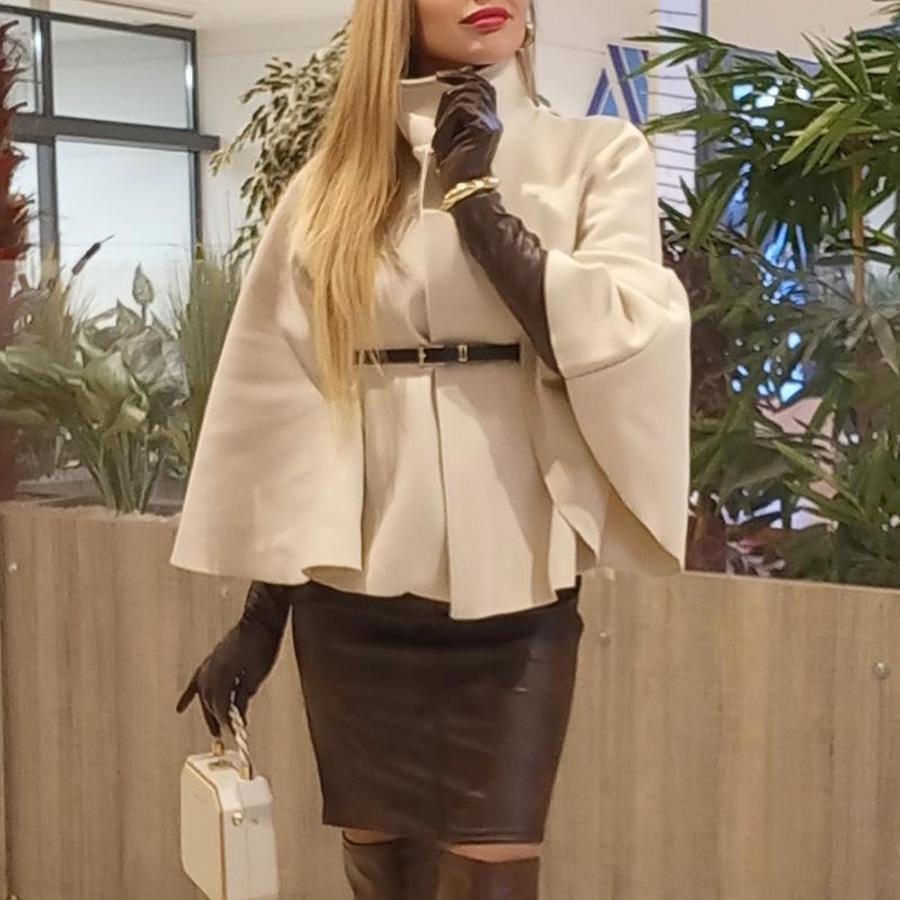 Women's Spring, Autumn and Winter Fashion Solid Color Waist Straps Woolen Cloak Jacket Women's Clothing