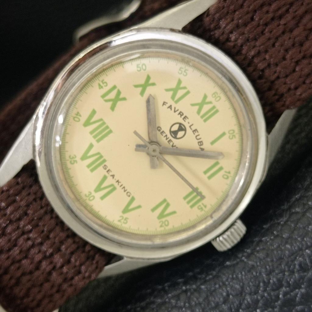 VINTAGE FAVRE LEUBA SEA KING HAND-WINDING SWISS MENS CREAM DIAL WATCH A703806-1 R213f-a703806