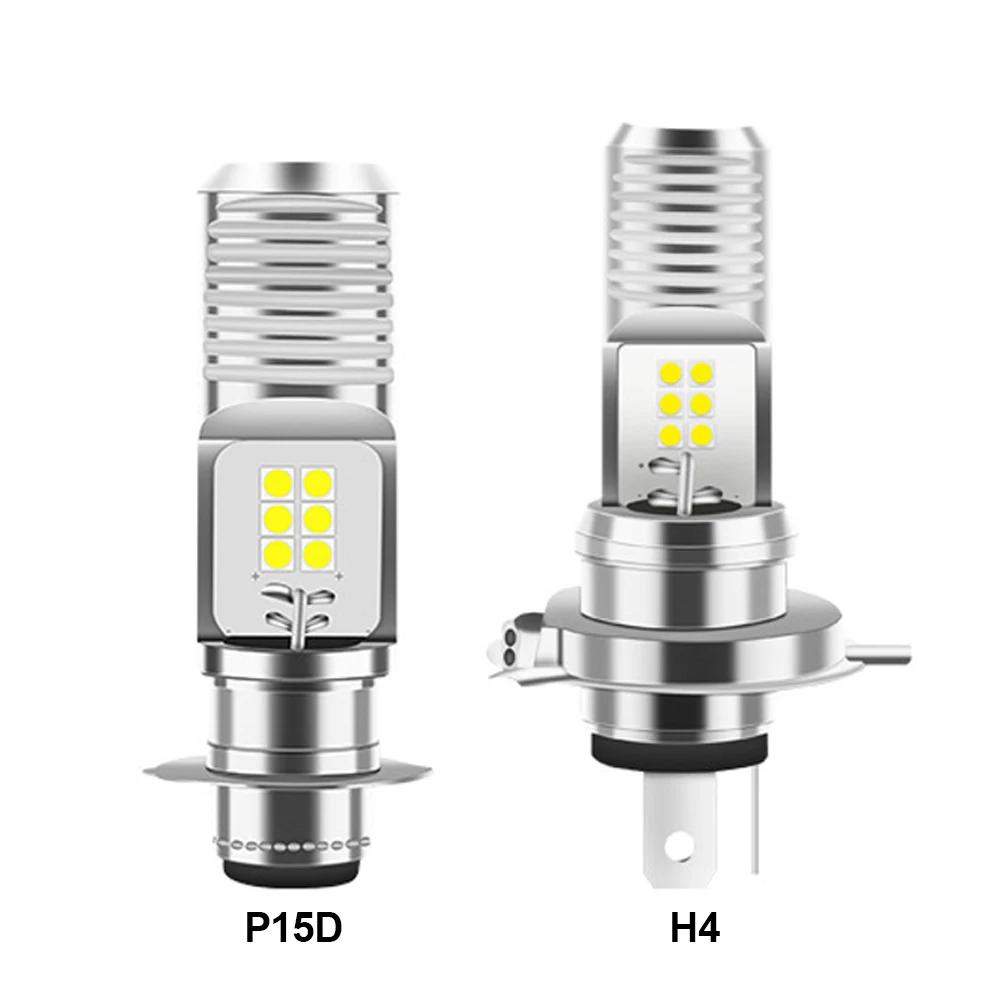 H4 P15D LED Headlight Bulb Super Bright 12V Car Running Lamp 6500K 6W High Low Beam IP68 Waterproof White Aluminum 4800LM