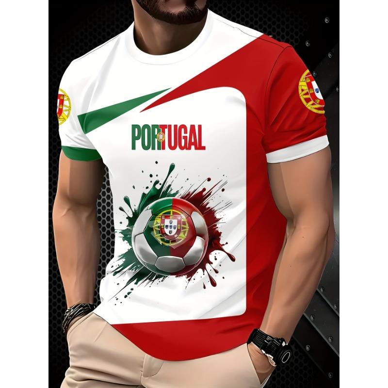Men's Portugal Football Themed 3D Printed T-shirt Casual Short Sleeved Round Neck T-shirt