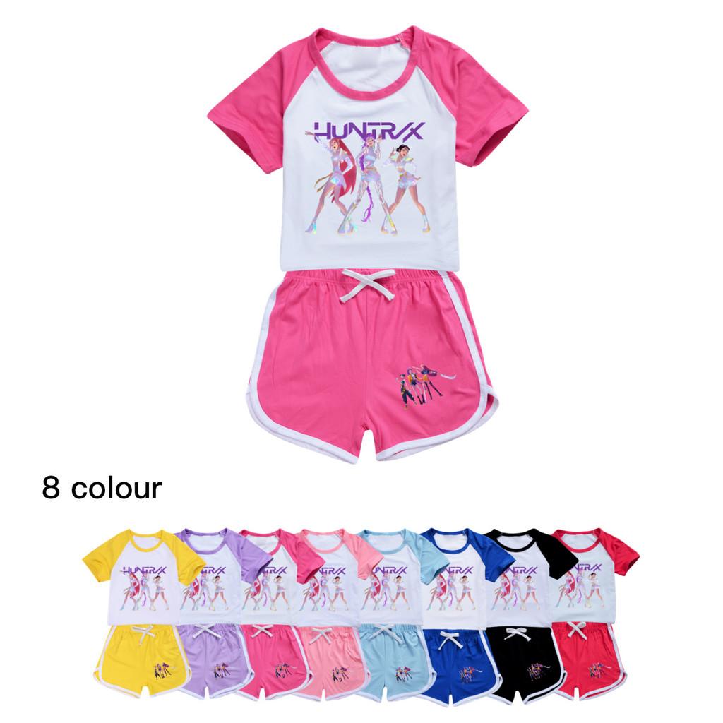 5019 Kids Girls POP Rumi Zoey Mira Print T-shirt Shorts Sport Tracksuit Clothes Set