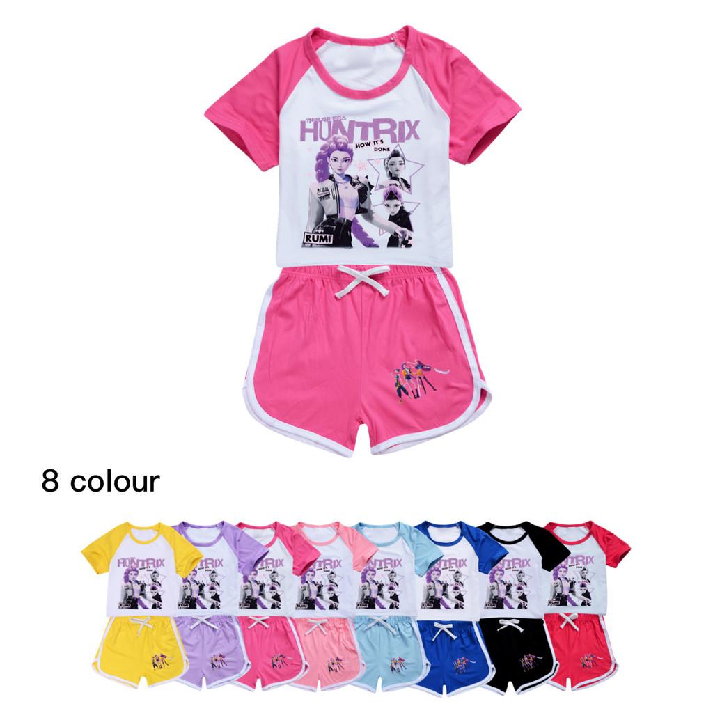 5105 Kids Girls POP Rumi Zoey Mira Print T-shirt Shorts Sport Tracksuit Clothes Set