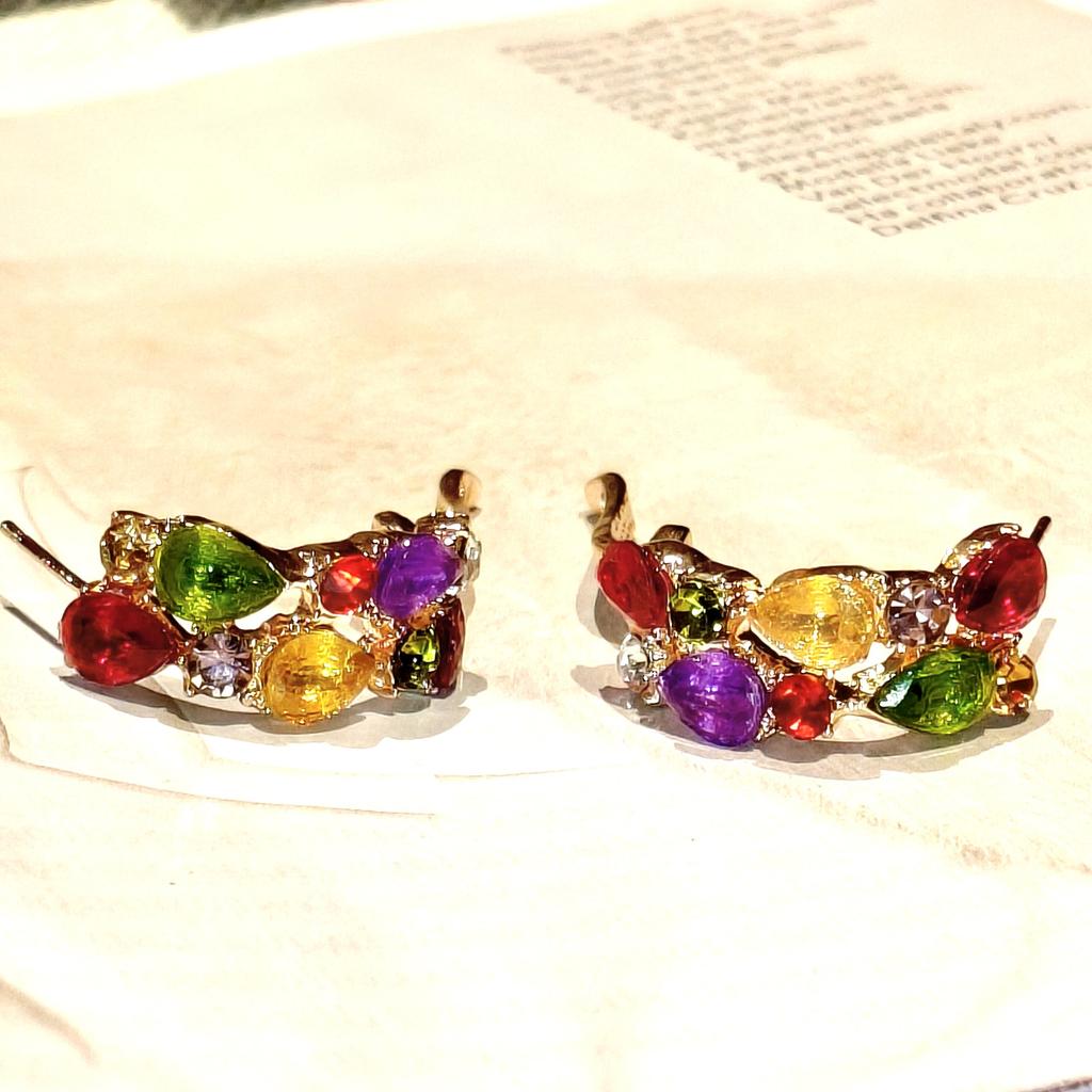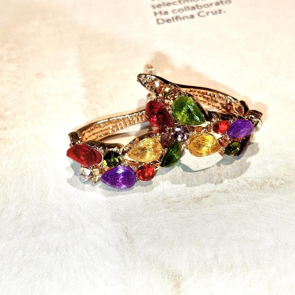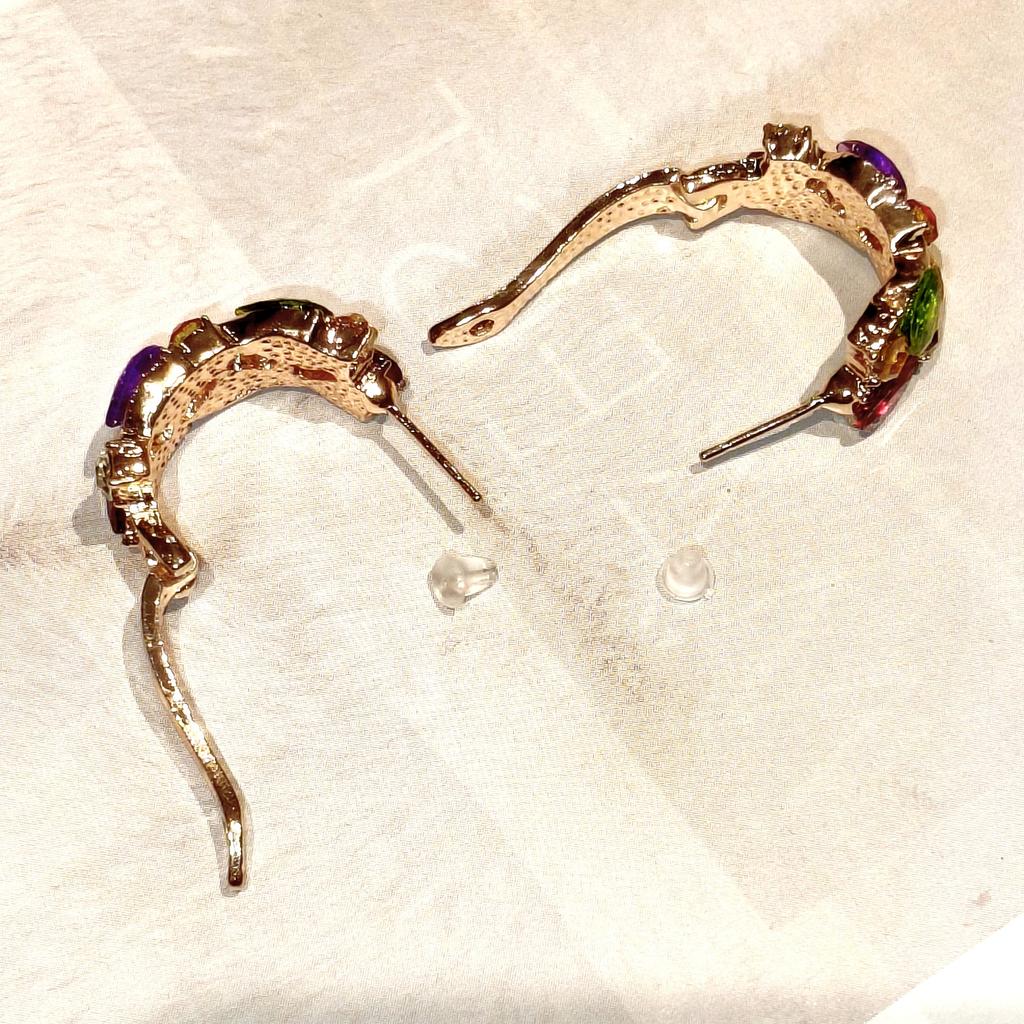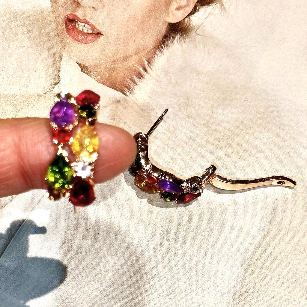 EARRINGS Earrings with splendid colored crystals!🤩 arrived in Italy with tracked shipping in 20 days in a combined package. Fast shipping. Well wrapped in a sheet of bubble wrap, they arrived intact. packaging: They are supplied in a plastic bag without the cardboard backing. Excellent value for money. The metal color is gold in zinc alloy. Back closure: sturdy metal with silicone caps. No glue stains and no defects. the crystals are well set and luminous The purchase is recommended👌👌👌👌👌