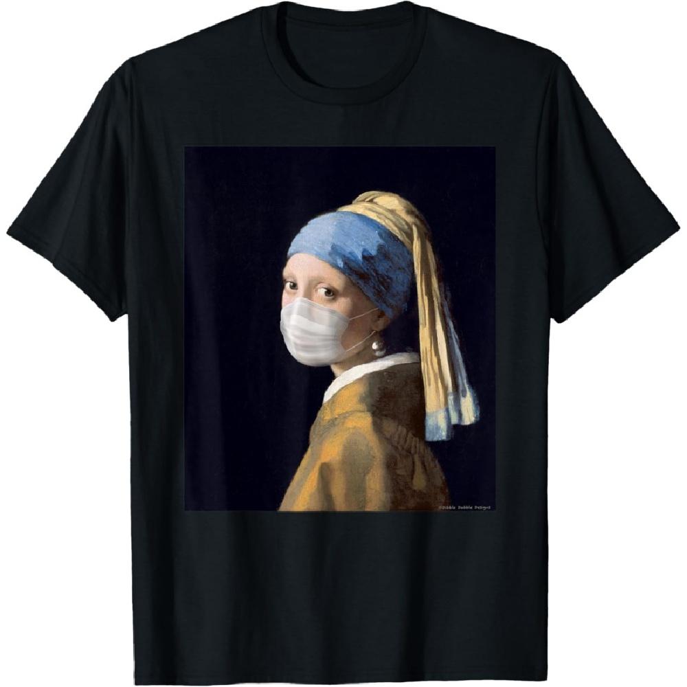 Famous Painting Girl with a Pearl Earring Wearing Mask T-Shirt