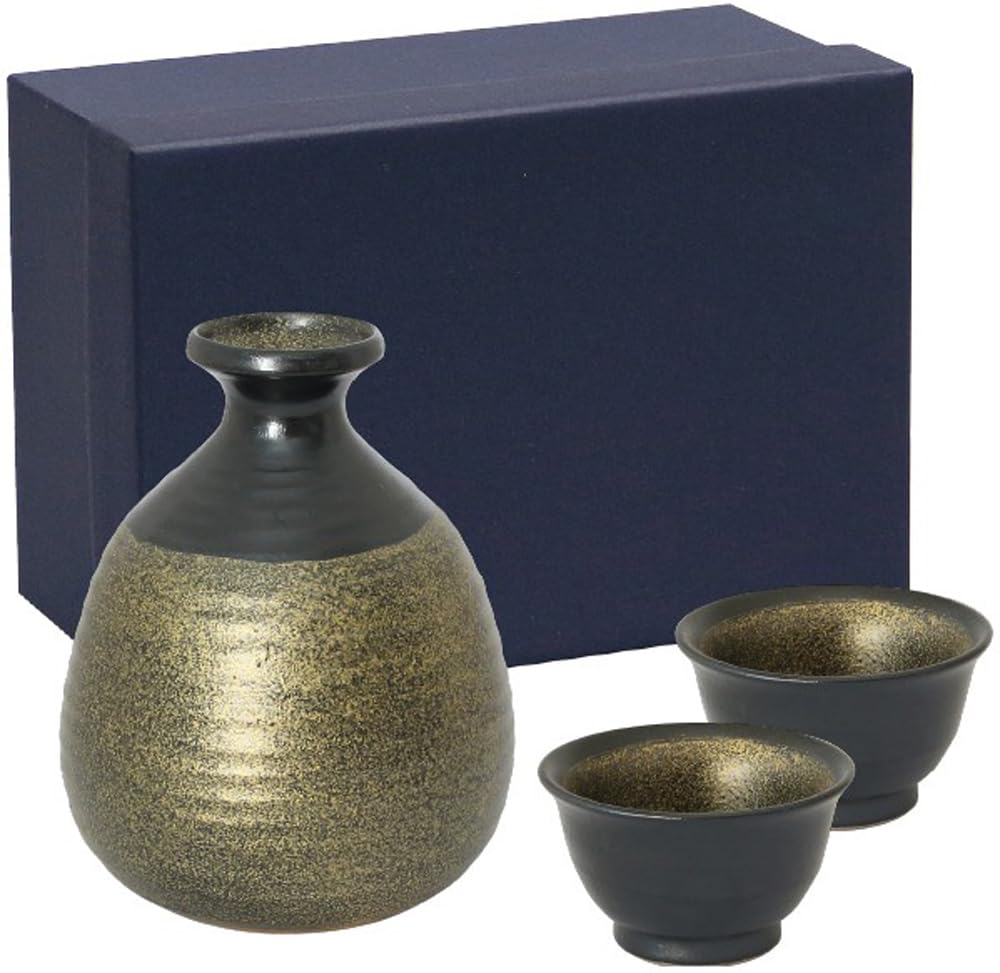 World Create Gold-Decorated Sake Cup (2 Cups) and Sake Bottle Gift Set 14395