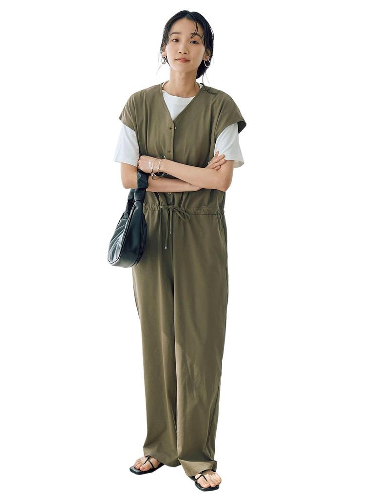 WELLTECT Series [Comfortable and Stylish] Essential summer functionality combined with a feminine, relaxed silhouette. This new material combines three key features: 1. Moisture-wicking, 2. Cool-to-the-touch, and 3. UV protection—perfect for summer! ■ Design: A stress-free cut-and-sew all-in-one. The relaxed silhouette is modern, with just the right amount of room around the chest and hips. The V-neck flatters the face, while the French sleeves slim the arms, revealing a healthy amount of skin. The drawcord at the waist adds a touch of style. Pair it with leather bags and shoes for a stylish city look. Pair it with flat sandals for a relaxed look. ■ Material: The front is made of Cohen's signature USA cotton open-end yarn, while the back is made of a specially designed polyester yarn. This casual material combines three key features: a cool feel, moisture-wicking, quick-drying, and UV protection. Transparency: None; Fabric Thickness: Normal; Sheen: None; Lining: None; Elastic Waist: Drawstring; Side Pockets: Yes; Machine Washable (Use a laundry net); Functionality: Moisture-wicking, Quick-drying, Cool-to-the-touch, UV Protection. [Notes] *The product shown is a sample and may differ from the actual product. *The color of the product may differ from the actual product due to lighting, angle, and your monitor settings. Images taken in studio are closest to the actual color. *For pre-order items, the estimated delivery date is only a guide. Please note that due to production circumstances, delivery dates may be delayed or may differ from the in-store arrival date. Product Name: WELLTECT USA Overalls Product Number: 76756430336