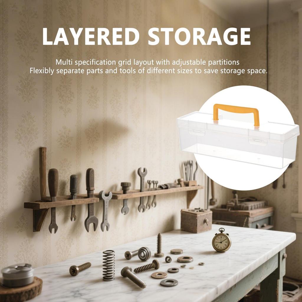 1500ml Tool Box Small Parts Fastener Organizer Clear Divided Case for Work Nuts Bolts Electronics Terminal Marker Ratchet Mechan