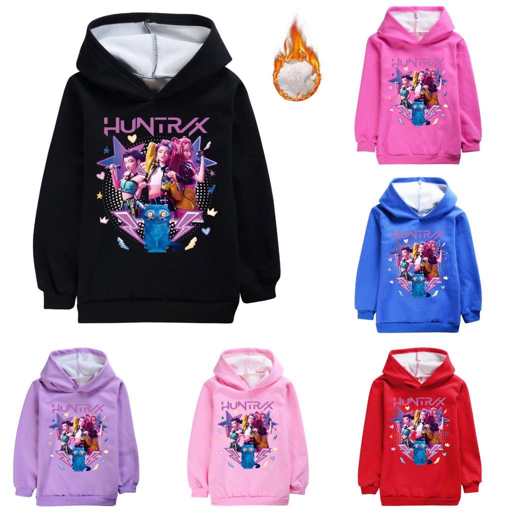 4983 Casual Girls Kpop Rumi Zoey Mira Print Long Sleeves Velvet Warm Hoodie