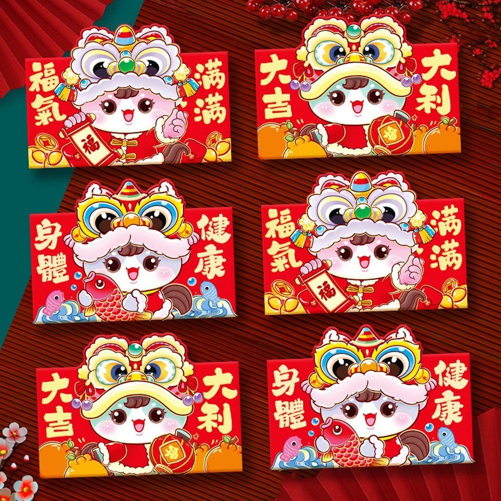 6pcs Glitter Frosted 2026 New Year Red Envelope Chinese Lucky Money Pockets Marriage Ceremony