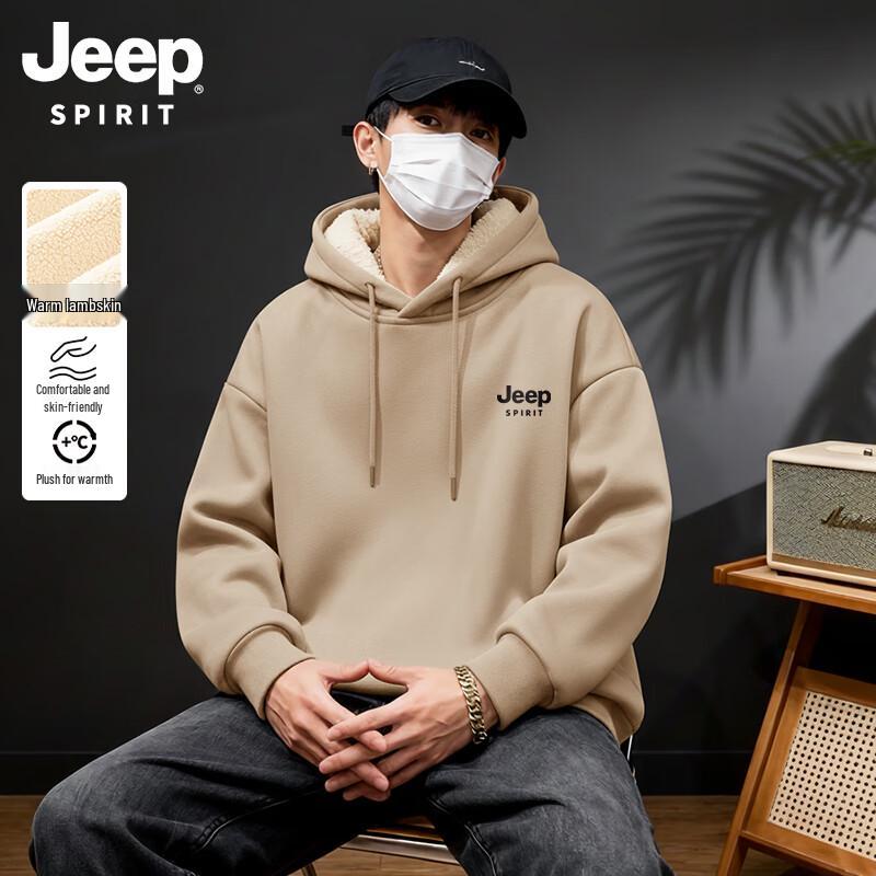 JEEP SPIRIT Men's Winter Lamb Fleece Lined Hooded Sweatshirt