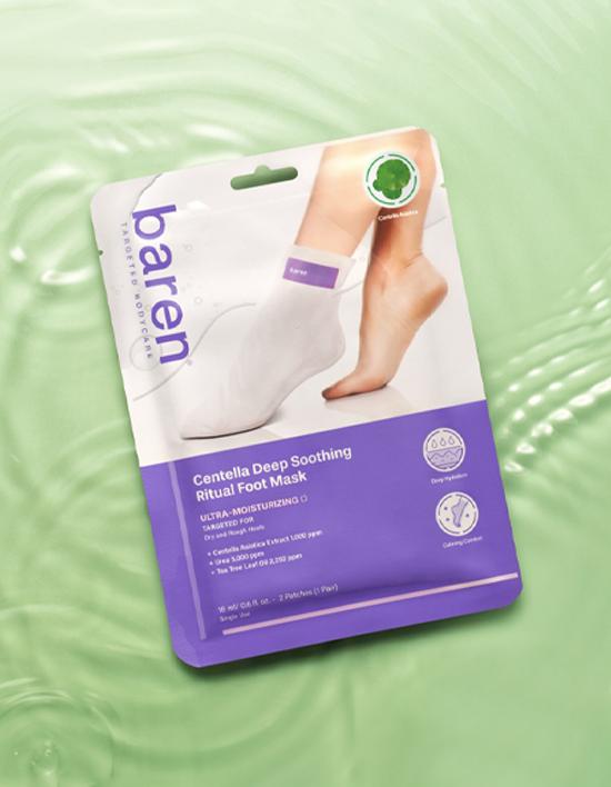 Baren Centella Deep Soothing Ritual Foot Pack 18ml 2 Pieces (1 Pair) utilizes Centella Asiatica extract to gently care for dry and rough foot skin. This foot pack offers comfortable hydration and deep soothing effects to intensively care for sensitive foot skin. Regular use weekly keeps your feet hydrated and healthy.