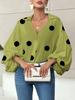 Women's Polka Dot Button Down Shirt, Long Sleeve Puff Sleeve Blouse