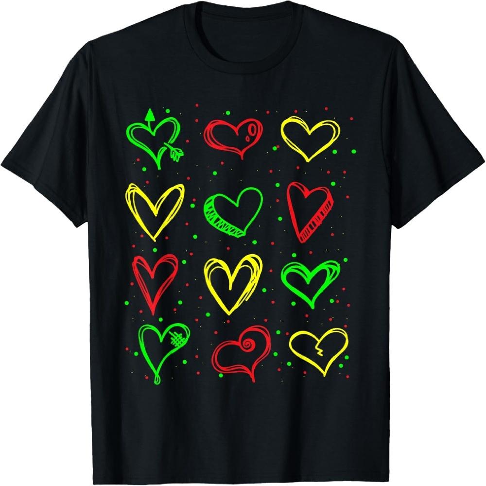 Heart Pattern Juneteenth Black History African American Flag T-Shirt