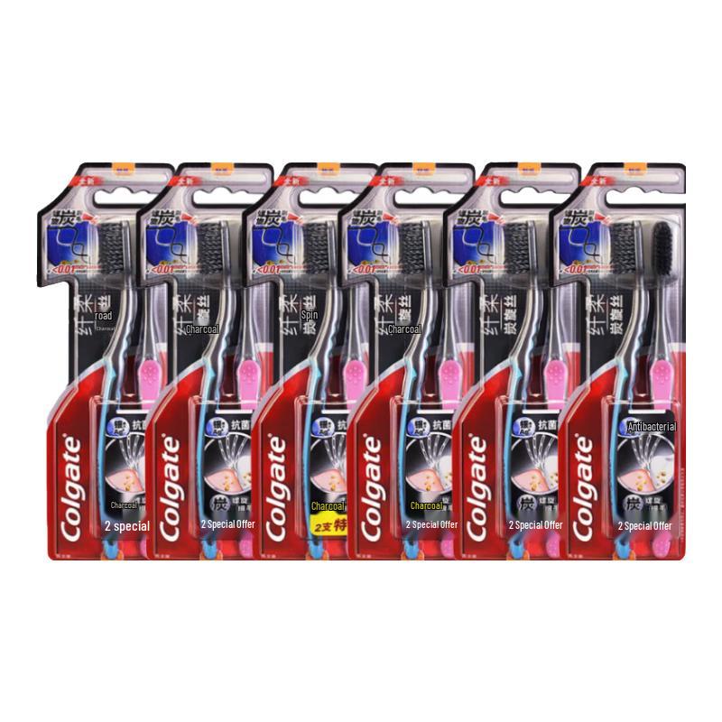 Colgate Slender Soft Charcoal Spiral Bristle Adult Toothbrush, 12-Pack