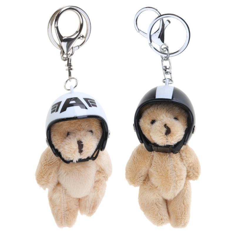 Plush Bear Keychain with Helmets Fashionable Bag Decorative Pendant Creative Soft Stuffed Animal Charm for Backpacks