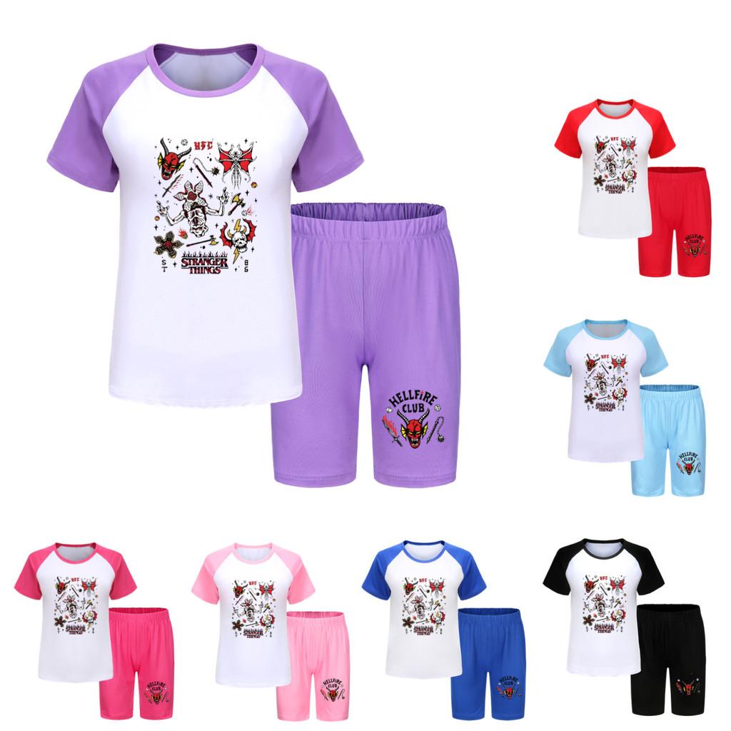 5254 Kids Boys Girls Stranger Print T-shirt Shorts Sport Tracksuit Clothes Set