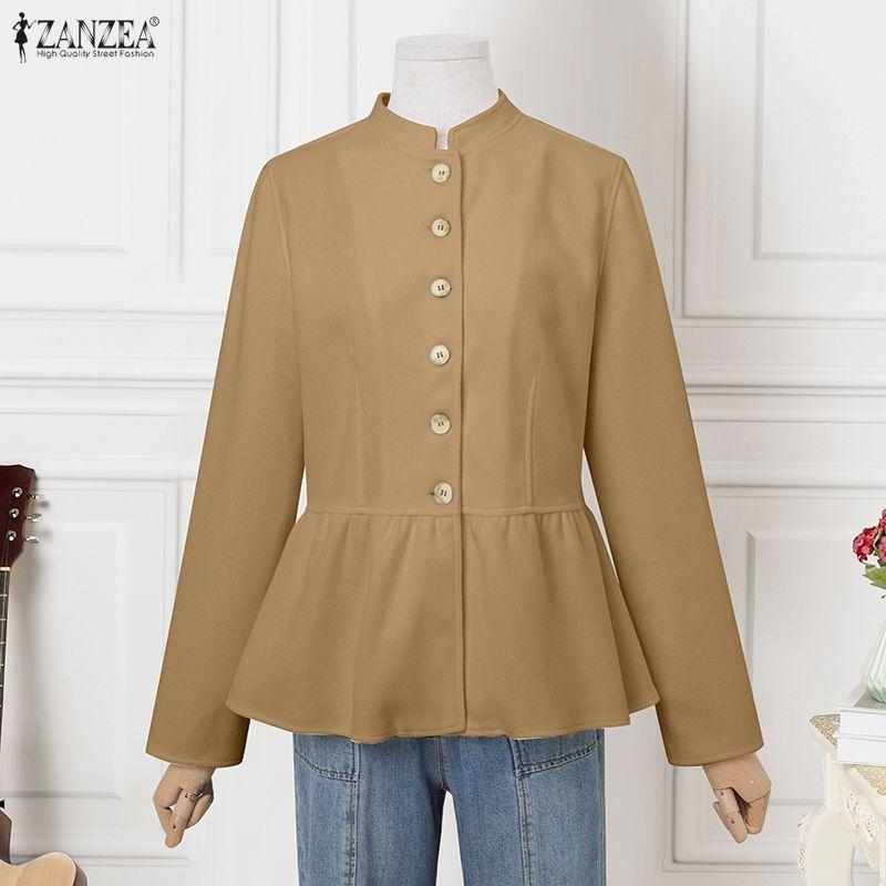 ZANZEA Women Casual Stand Collar Long Sleeve Spring Autumn Woolen Blouse