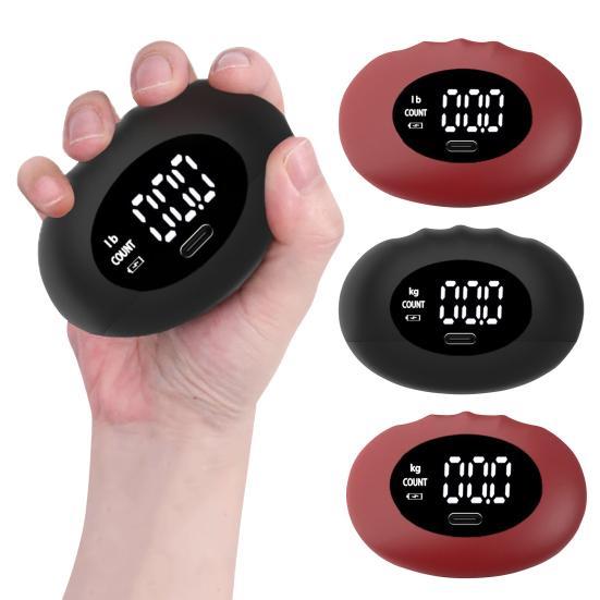 Enhance your hand strength and endurance with this Portable hand grip trainer, designed for comfort and convenience. Featuring an ergonomic fingerprint grip, it reduces tension and fatigue during use, making it ideal for on-the-go strength training. The built-in LED smart display accurately tracks your grip weight and repetitions in real time, providing clear feedback to monitor your progress easily.