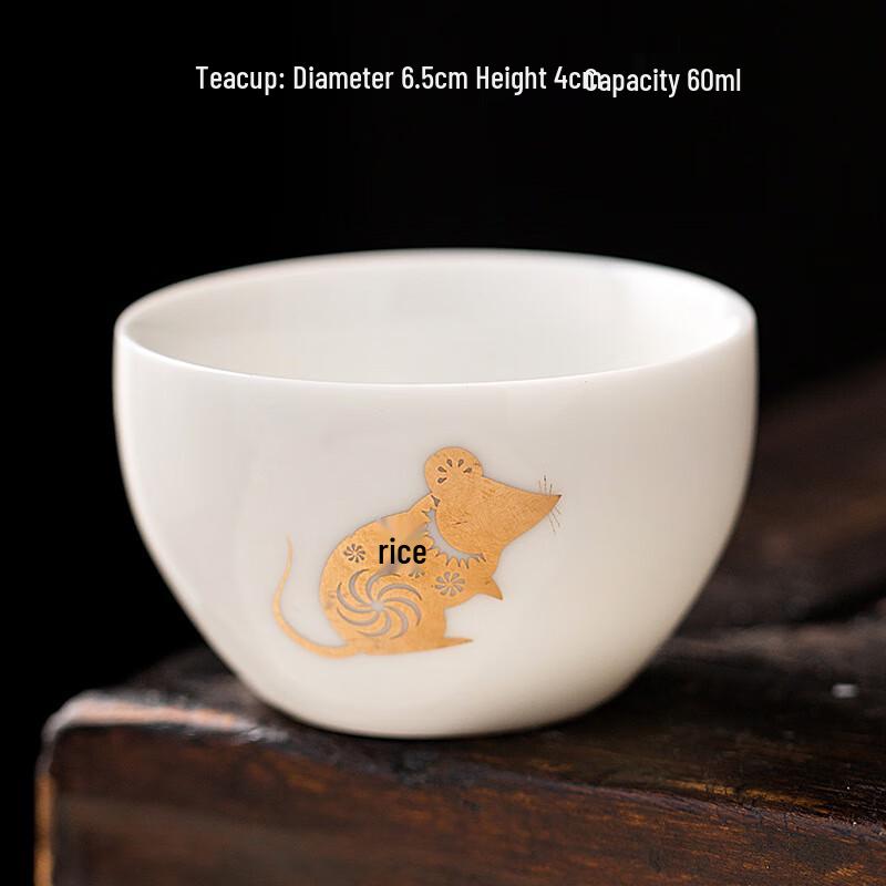 Sheep Fat Jade Style Porcelain Gongfu Master Tea Cups - Rat Zodiac (Set of 2)