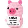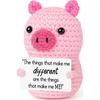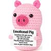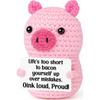 Pink Cute Pig Positive Crochet Animals Doll With Card Desktop Ornament Emotional Support Handmade Knitted Cheer Up Toy