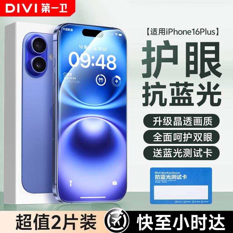 DIVI Anti-Blue Light Eye Protection Tempered Glass Screen Protector for iPhone 16 Plus/15 Plus