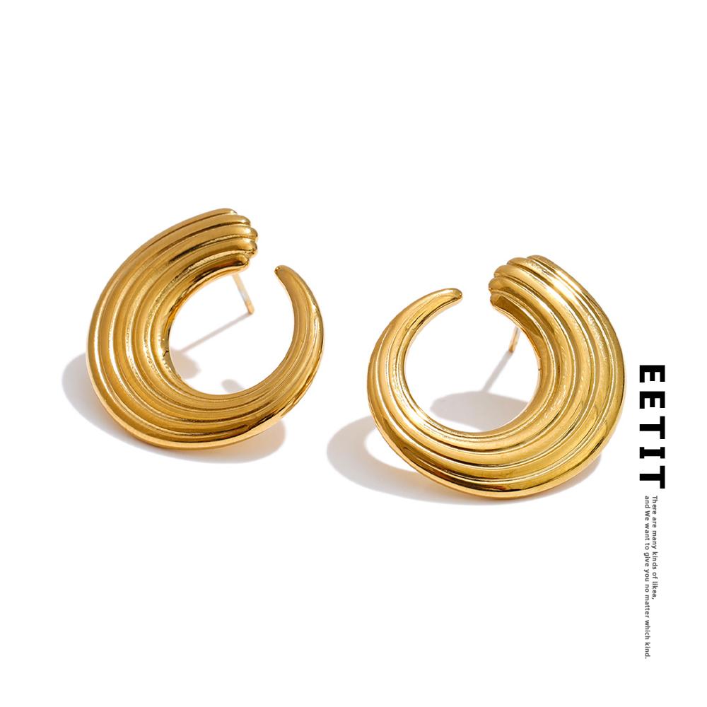Eetit Stainless Steel Geometric Stripe Hollow Stud Earrings for All Occasions Anti Allergic Metal Simple Daily Modern Jewelry