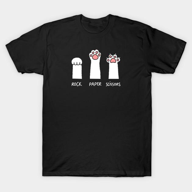 Men Black Print T-shirt Rock Paper Scissors: Funny Cat No-Cut Transfer Paper Print Cotton Tshirt
