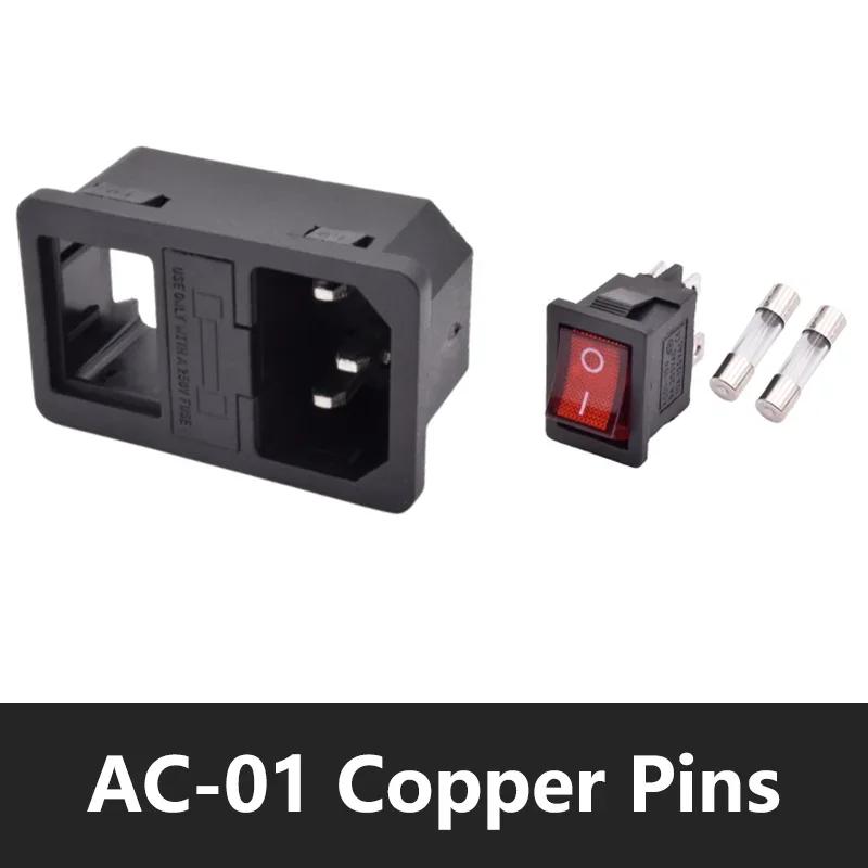 5/20Pcs Rocker Switch AC Power Socket Switch Plug Connector AC Socket with 10A Fuse Red LED Lamp