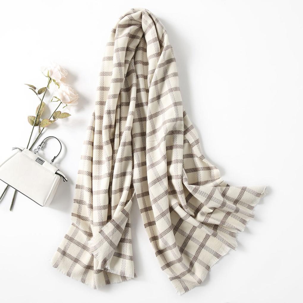 Cashmere Check Mood Long Muffler Shawl Fall/Winter Ivory