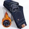 Autumn and Winter Fleece Thickened Jeans Loose Straight Pants Versatile Business Elastic Thermal Trousers